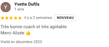 ⭐⭐⭐⭐⭐ "Très bonne coach et très agréable Merci Alizée 👍"